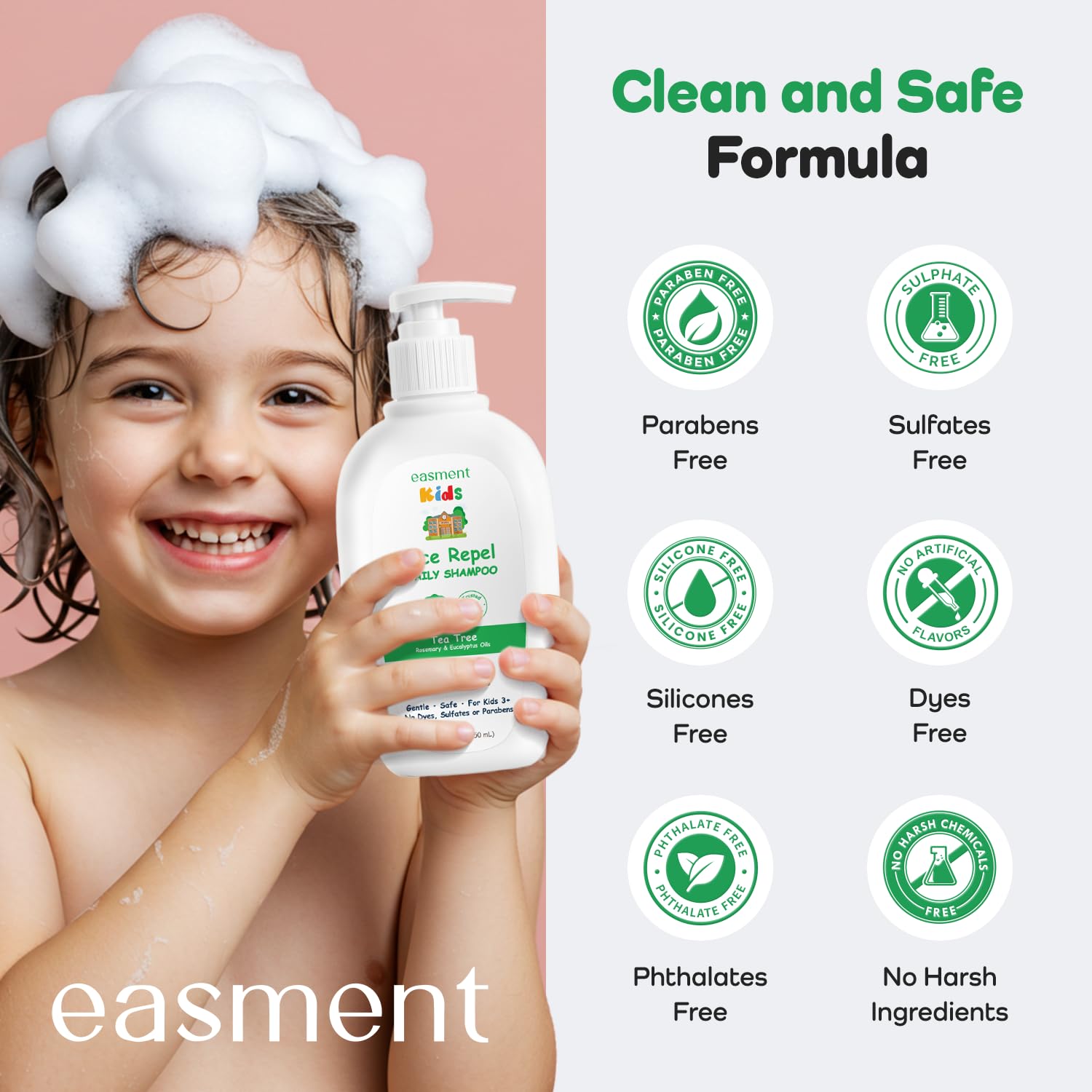 - Pump Bottle Kids-Friendly Design: Unlike most lice shampoos in squeeze bottles, Easment features a convenient pump bottle—easy for children to use themselves, more hygienic, and helping parents control the right amount every time.